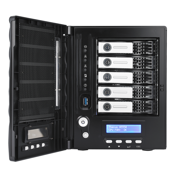 Thecus® is proud to present itself as a technological innovator. Once again, Thecus® releases an all new 5-bay N5550 server to lead the competition. The past proves merit: link aggregation, LCM display, USB 3.0, multi RAID functions and so on. Impressive technologies have been used to develop the new N5550 NAS to serve one single purpose: improve user experience and satisfaction.